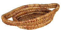 たとえば、ガーナではエレファントグラスという草を編んでカラフルな丸かごを作ります。 ナイジェリアではラフィアという椰子の葉を使ってバスケットやバッグを作ります。 これらのかごは、地元の人々の生活に密着したもので、農業や買い物、酒造りなどに使われます。農耕文化の西アフリカでは、穀物を運んだり篩いに掛けたりする為のかごが見られます。ほとんどの地域でかごを頭に乗せて運ぶので取っ手が無く、バランスがとり易いように上の方が少し広くなっているのが特徴です。 素材は、サバンナに自生するイネ科の草や、ウチワヤシ・ドゥムヤシなどのヤシ科の樹の葉が用いられています。