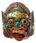 インドネシアでは、トパンという舞踊劇で、ラーマヤナやマハーバーラタなどの古典的な物語に登場する神や悪魔などの精霊を表現するお面が使われています。お面は、木製であり、金箔や宝石などで装飾されています。
