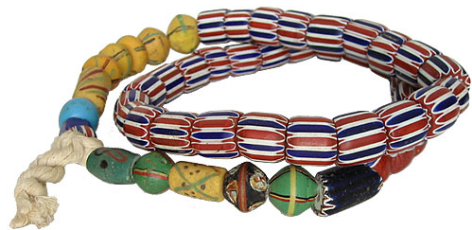 ベネチアで作られたガラスビーズで、金太郎飴のような断面に色とりどりの花や幾何学模様が入っています。16世紀から19世紀にかけてアフリカに輸出されました。