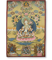 絵曼荼羅:紙や布に絵を描きます。お寺や家で飾ります。仏教の教えや歴史を伝える為に使われます。