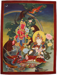 黄多羅菩薩 : 学業成就や知恵の象徴とされています。黄色の肌に二つの腕を持ち、経典と法輪を手にしています。